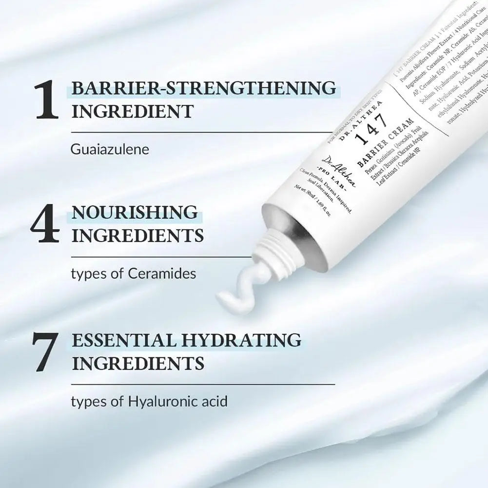1. Contains rich nourishing ingredients, 147 Barrier Cream deeply moisturizes, improves dry skin, and makes the skin soft and shiny.